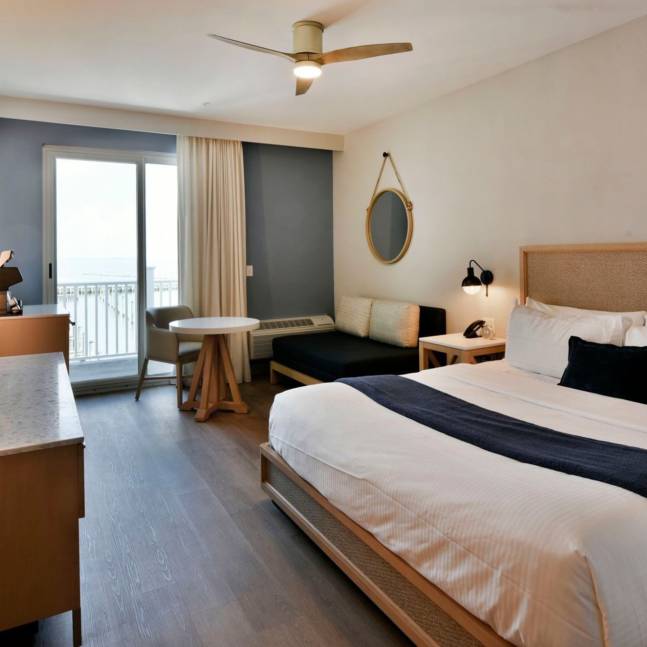 Relax in this well-appointed room featuring one king bed and a private balcony. Whether you’re enjoying your morning coffee outside or settling in after a day by the water, this room offers comfort, convenience, and a welcoming retreat. Located in North Tower.
