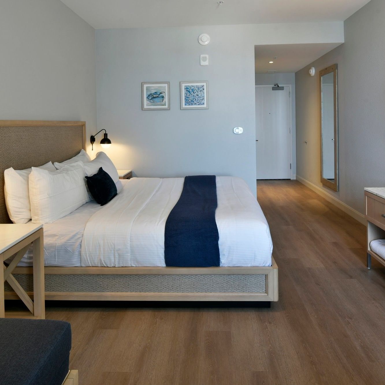 This mobility-accessible room features one king bed and a roll-in shower designed for ease and comfort. Additional accessibility features ensure a seamless and relaxing stay while maintaining the same style and amenities as our standard king rooms.