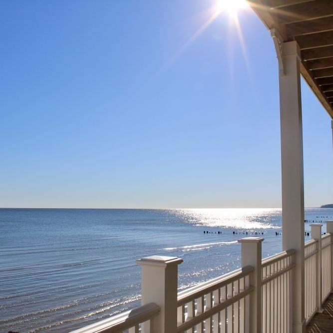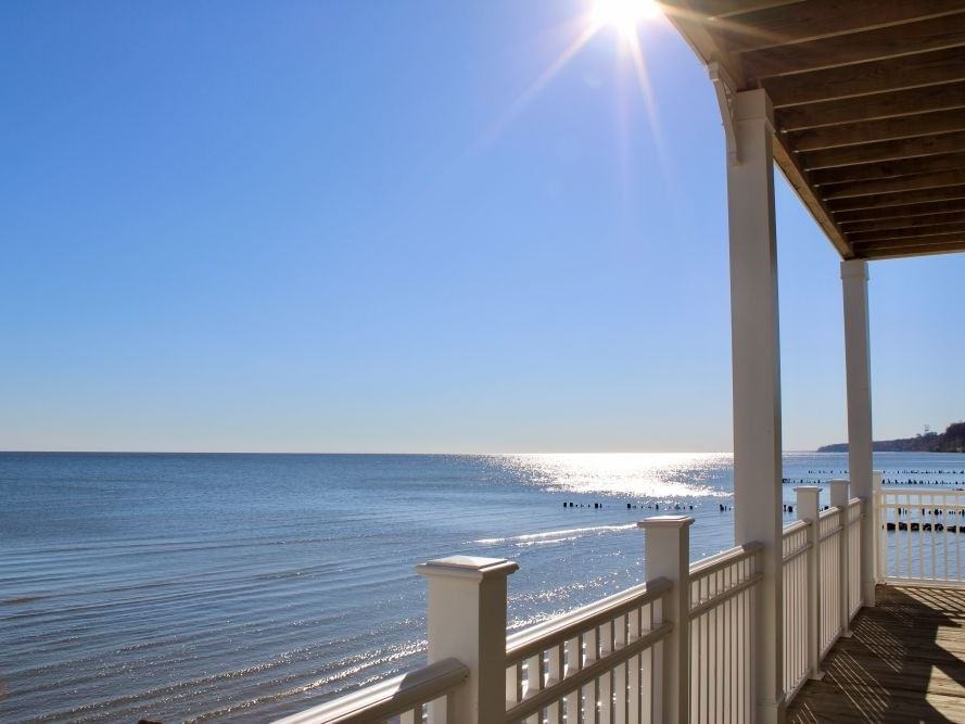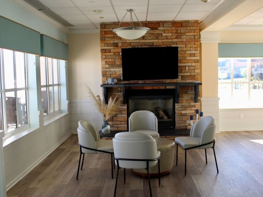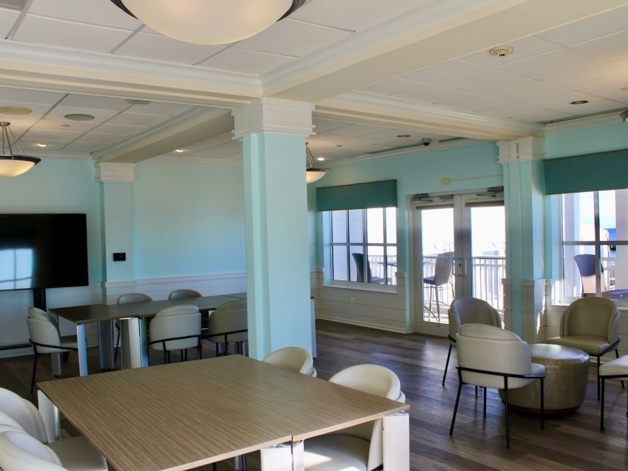 The Club Room offers a bright and welcoming setting for meetings, luncheons, and social gatherings of about fifteen to thirty guests. With flexible table seating arrangements, the space can be tailored to suit your event’s need, whether it’s a corporate workshop, private dinner, or casual celebration. Coastal shiplap walls and a beautiful stone fireplace add character and charm, while two walls of expansive windows flood the space with natural light and showcase stunning views of the Chesapeake Bay and beach. Combining comfort, versatility, and waterfront elegance, the Club Room offers a memorable setting for both professional and social events.